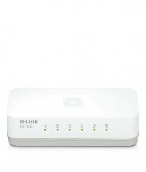 The DES-1005A 5-Port 10/100 Switch allows you to quickly set up a fast, reliable, and efficient wired network in your home or office. The DES-1005A is an unmanaged 10/100Mbps switch designed to enhance small workgroup performance while providing a high level of flexibility. Powerful yet easy to use, this device allows users to simply plug any port to either a 10Mbps or 100Mbps network to multiply bandwidths, boost response time and satisfy heavy load demands. Connect the DES-1005A to multiple computers to share files and folders, or connect it to a router to share an Internet connection.